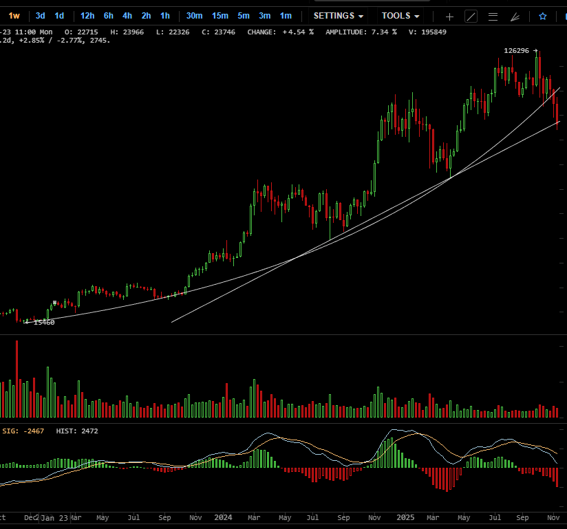 Anyhow, I haven’t been following crypto news much and have no idea about Saylor’s activities or whether the above represents a true description of the issues Microstrategy faces. Some people have previously spruiked both BTC and Microstrategy here, and I have no skin in the game other than some downside bets on Polymarket (once the exponential trendline broke), it might be good for all of those interested in the subject to revisit their decisions and explain why they remain either pro or con in relation to holding BTC or crypto in general.